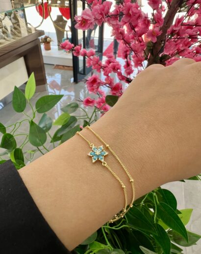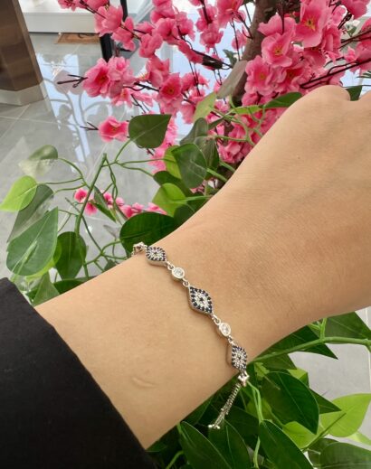 Tasarım: Yuvarlak mat taşlar ile köşeli parlak küplerin yarattığı doku zıtlığı, bileklikte inanılmaz bir derinlik oluşturur. Simsiyah zirkon taşlarla işlenmiş merkez parça, tasarımı “Premium” bir seviyeye taşır.