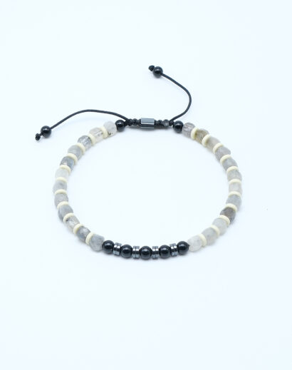 Dingin Geçiş: Gri Labradorit & Oniks Merkezli Doğal Taş Bileklik