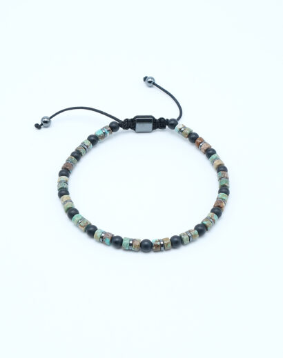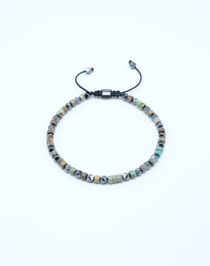 Evrimsel Mozaik : Afrika Turkuazı & Geometrik Hematit Doğal Taş Bileklik