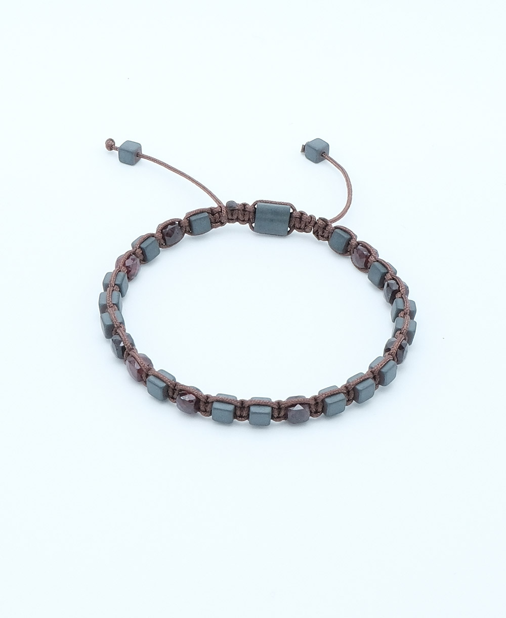 Koyu kırmızı tonlarıyla aralara serpiştirilen Garnet, durağanlaşan enerjiyi harekete geçiren “canlılık” sembolüdür. Hematit’in sakinleştirici etkisini, güçlü bir yaşam enerjisiyle dengeler.