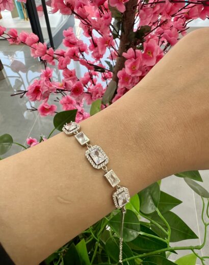 Gümüş Pırlanta Montürlü Baget ve Yuvarlak Taşlı Bileklik