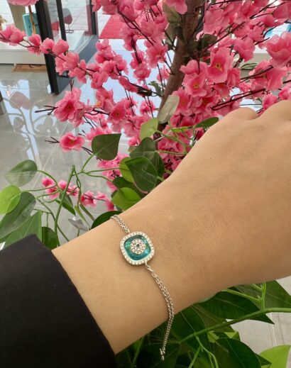 Gümüş Pırlanta Montürlü Nazar Gözü Bileklik