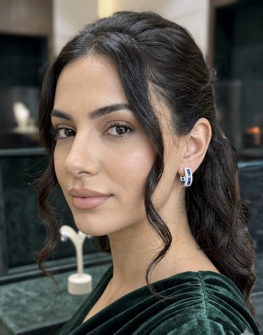 Gecenin en derin mavisini kulaklarınıza taşıyın. 925 ayar gümüş üzerine işlenen kraliyet mavisi taşlar, zarafetinizi pırlanta ışıltısıyla çevreler. Modern halka formu, klasik safir rengiyle birleşerek zamansız bir parça ortaya çıkarıyor.