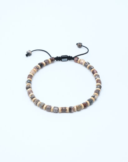 Toprağın Dokusu: Kahve Jasper & Zirkon Detaylı Doğal Taş Bileklik